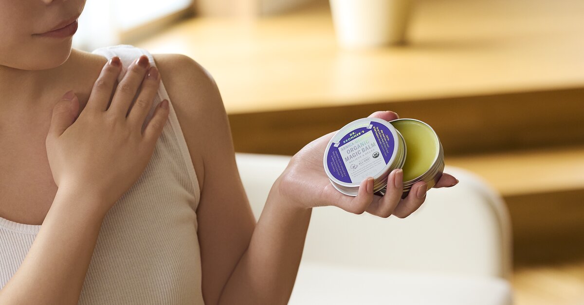 天然由来成分100%のオーガニックマルチバーム。マッサージしながら筋肉をほぐせます。