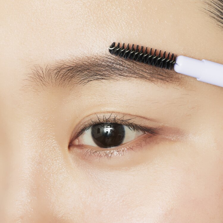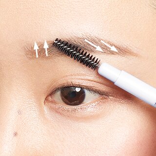 スクリューブラシを使い、毛流れに沿って眉頭は上に、中央から眉尻は斜め下に向かって毛並みを整えます。