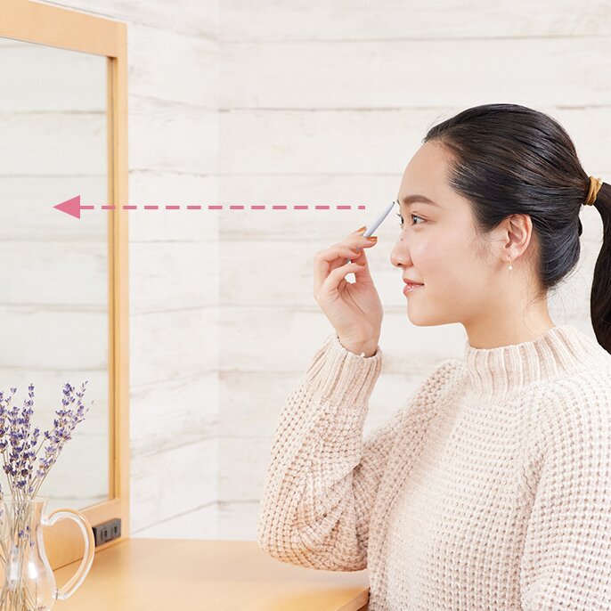 細眉を描くときのポイントは、眉の軸を先に描いていくこと。