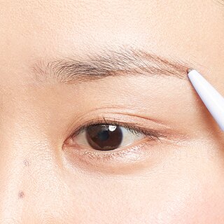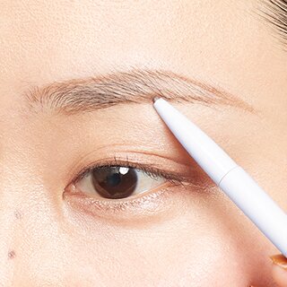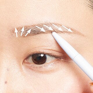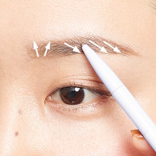 眉の軸となる中心部分から、アイブロウペンシルを使って毛並みに沿って一本一本描いていきます。