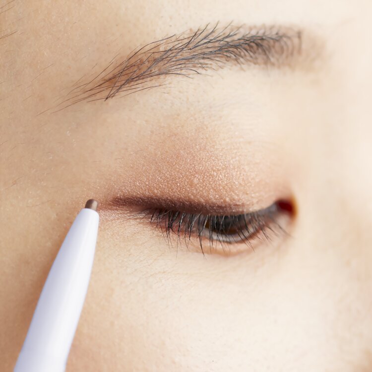 目を大きく見せようとアイラインを太く引きすぎてしまうと、かえって目が小さく見えてしまいます。特に、一重さんは目を開けた時にラインが埋もれやすく、「気づいたらラインを太く引いている!」ということも起きやすいので注意をしましょう。目を開けた時に見える目尻側にだけアイラインを引くと、ナチュラルに目を大きく演出することができます。より目を大きく見せたい場合は、目のキワにブラウンのアイシャドウを軽く重ねるのもおすすめです。
