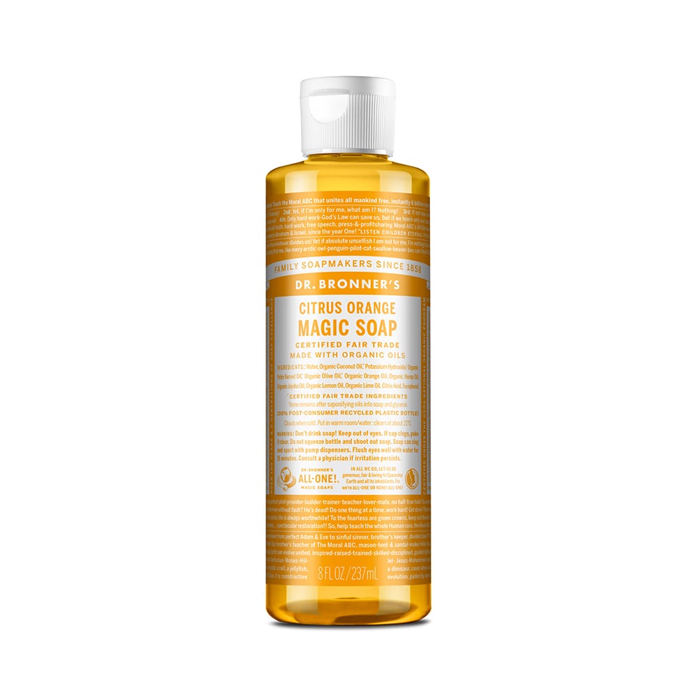 マジックソープは植物オイルを贅沢に配合。天然の洗浄成分が濃厚なため、合わせる水の量によって濃度を調節でき、暮らしの様々なシーンで活躍します。ドクターブロナーがおすすめしている使い方は12通り。顔や体を洗うのはもちろんのこと、掃除・食べこぼしの洗濯・犬用シャンプーなど、あらゆる場面で洗剤の代わりとしてお使いいただけます。詳しい12通りの使い方については、動画をチェックしてみてくださいね。