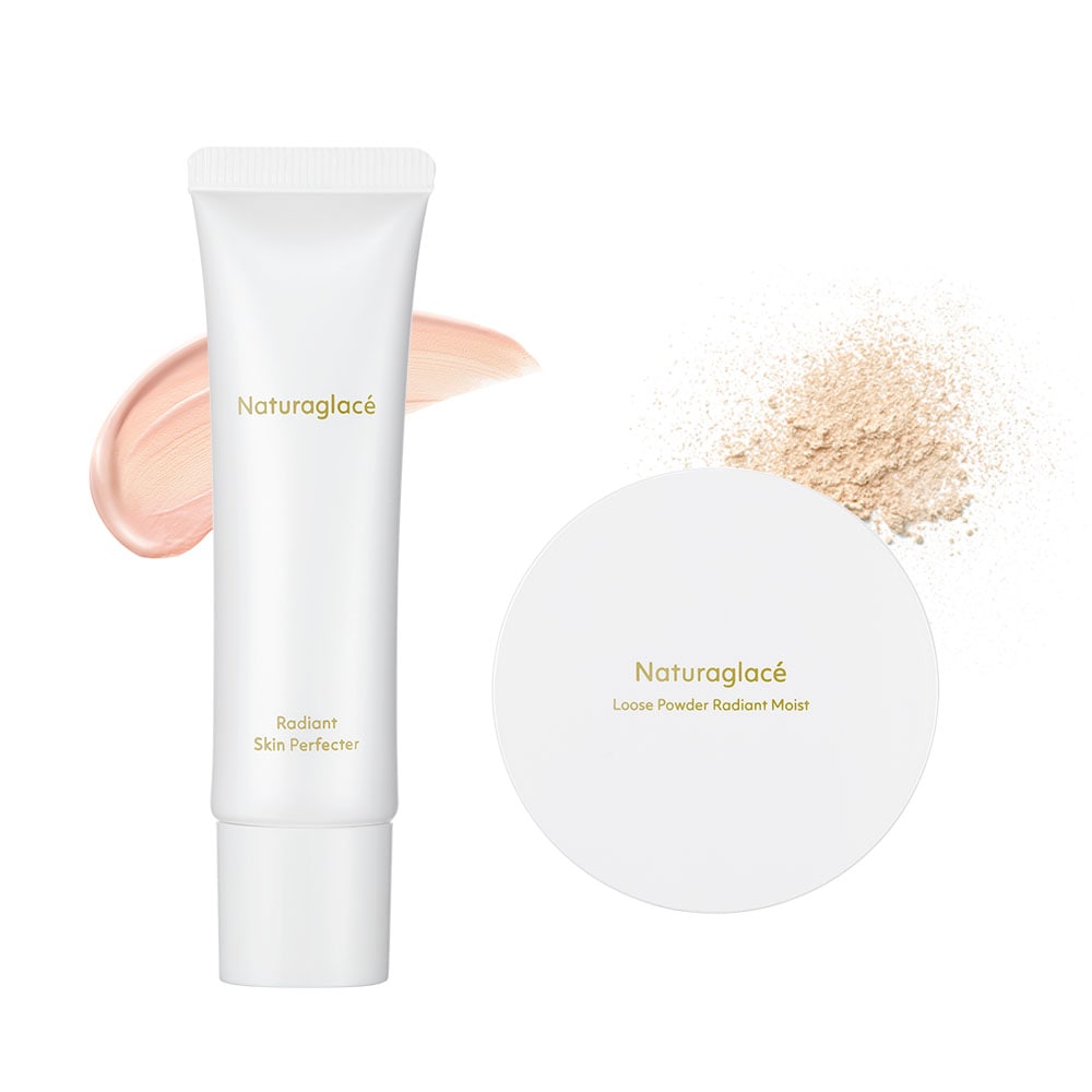 みずみずしく輝くうるツヤ肌に仕上がる「ラディアント スキンパーフェクターN」とシルクのような肌質感へ導く「ルースパウダー ラディアント モイストN」の公式オンラインショップ限定セットです。