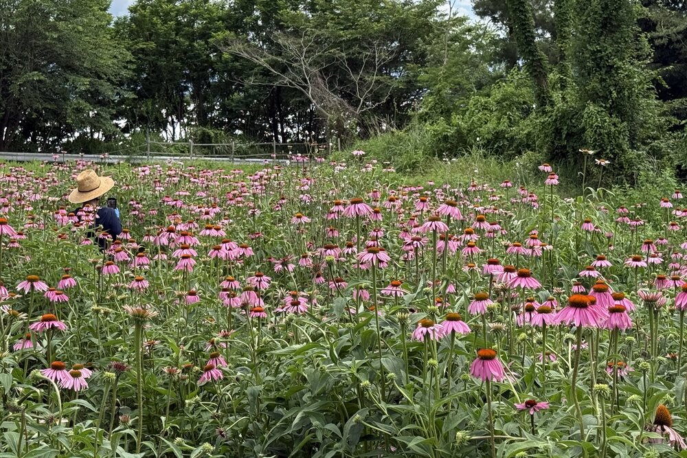 人の背丈と同じくらいの高さまでまっすぐと伸びていていたエキナセア。