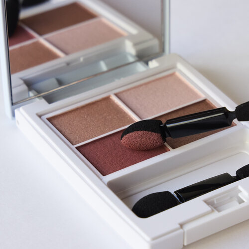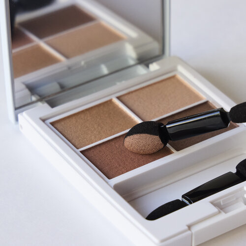 さらに、透明感*や明るさを引き出す"仕込みカラー"、まろやかな色合いとサテンのような光沢で印象をつくる"メインカラー"、そしてスモーキーな発色で目もとを引き締める"陰影カラー"の4色構成からなる異なる質感で、ナチュラグラッセらしい、ナチュラルでありながら洗練された印象のメイクを叶えます。