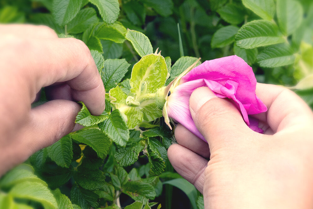 「かみでファーム」では、花びらが5枚の原種にこだわり、農薬を一切使用せず、ひとつひとつ手作業で栽培されています。丁寧に手をかけ大切に育てられているからこそ、香り高いハマナスが育つそうです。