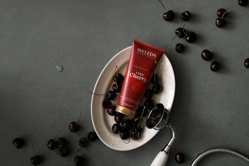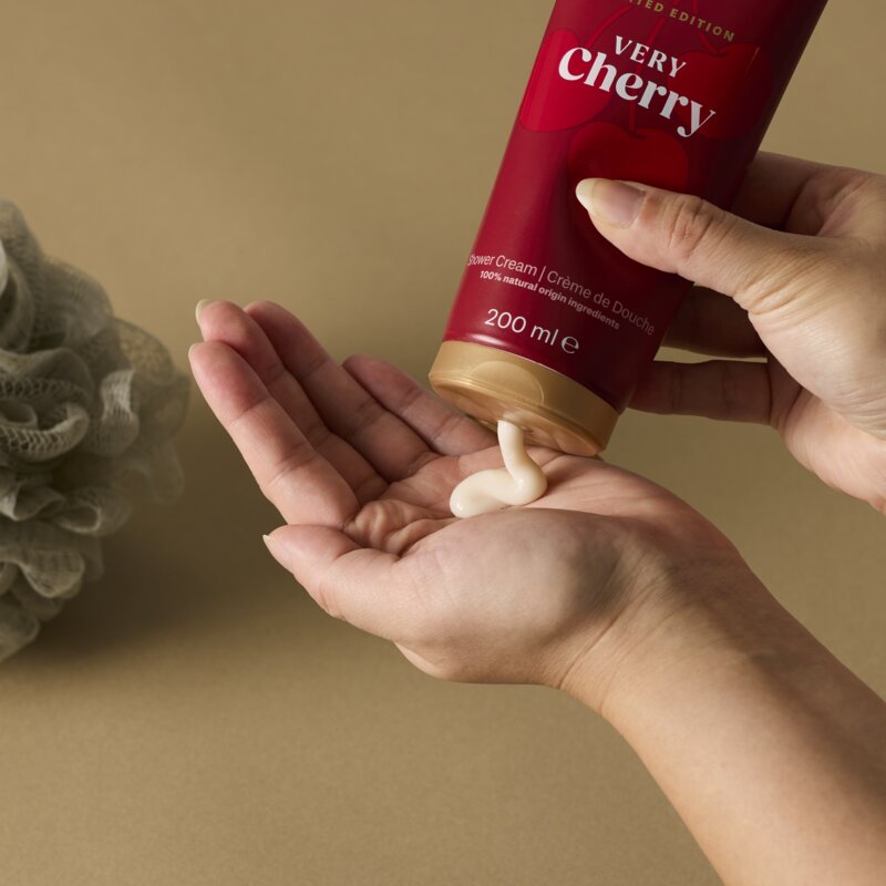 肌をしっとり洗い上げながら、甘くフルーティなチェリーの香りがバスルームいっぱいに広がります。