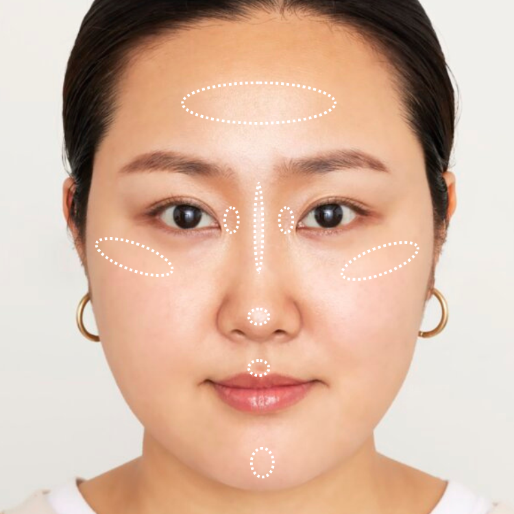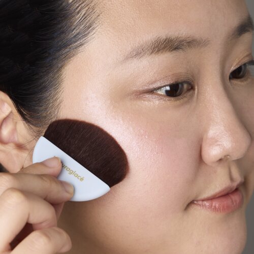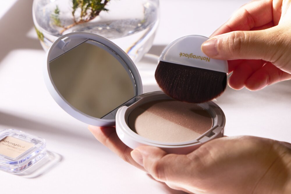 2色を混ぜてブラシにとり、メイクの仕上げにTゾーン・目の周りなど明るくしたい部分になじませます。