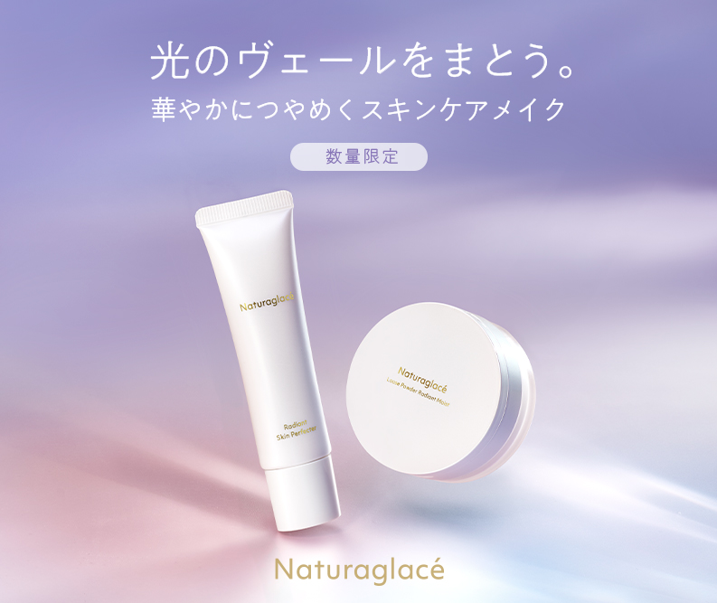 ナチュラグラッセの「ラディアントシリーズ」は、冬の肌に透明感*を宿し、高いスキンケア効果でみずみずしいうるおいを与える数量限定のベースメイクシリーズ。