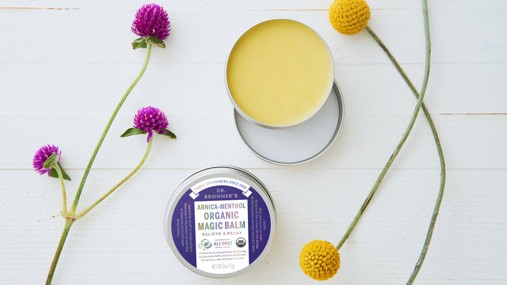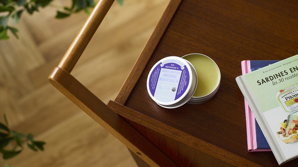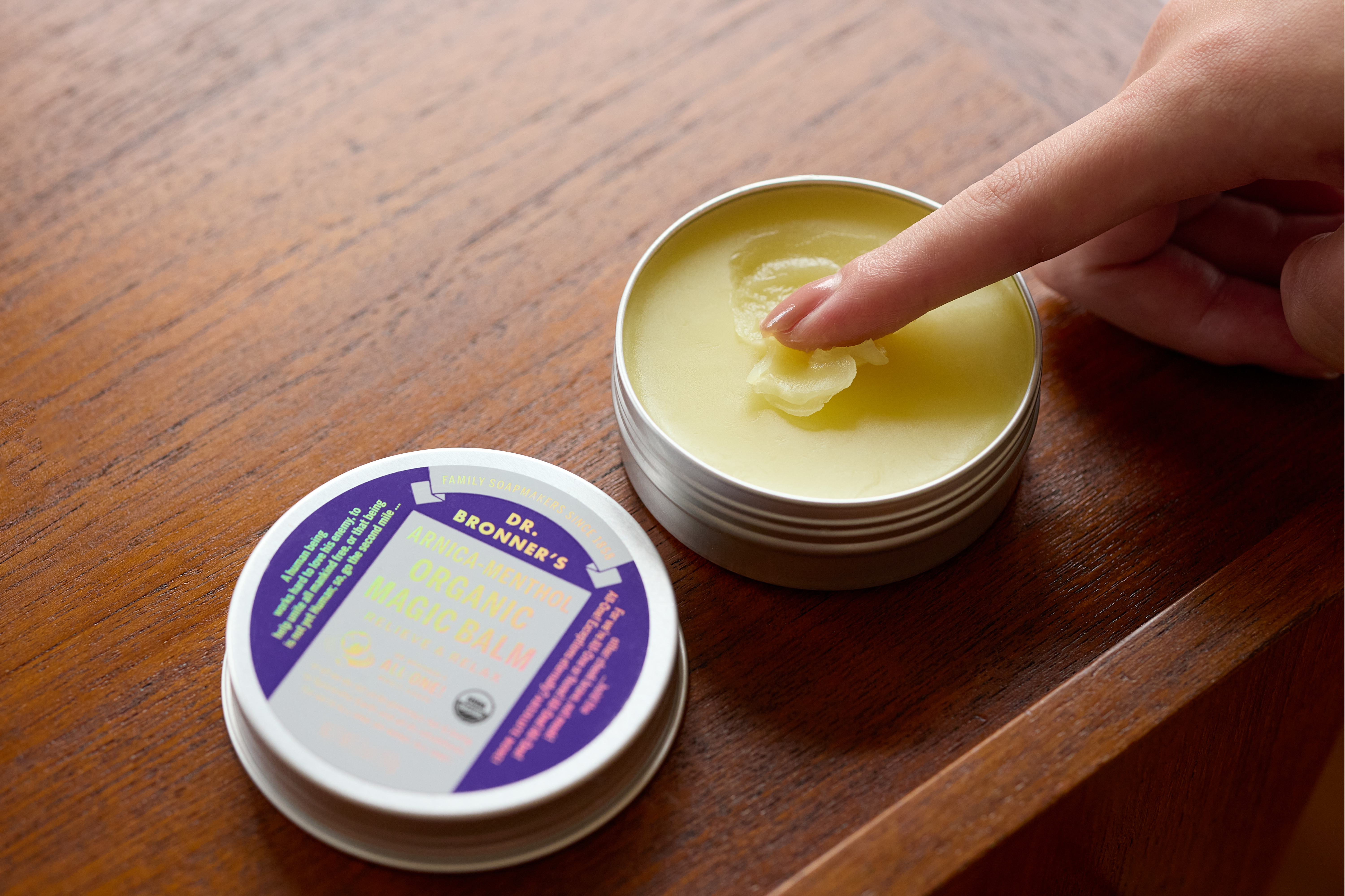 誕生のきっかけは、ドクターブロナーのCEOであるデイビッド・ブロナーが、趣味のサーフィンで体を酷使したあとに行う、セルフマッサージのためにつくったことが始まりでした。 自身で使い、その心地よさを実感したデイビッドは、次第に友人や家族にもこのバームを手渡すようになります。使った人たちから「ぜひ多くの人にも使ってほしい」という声が寄せられたことをきっかけに、「オーガニックマジックバーム アルニカメンソール」として誕生しました。