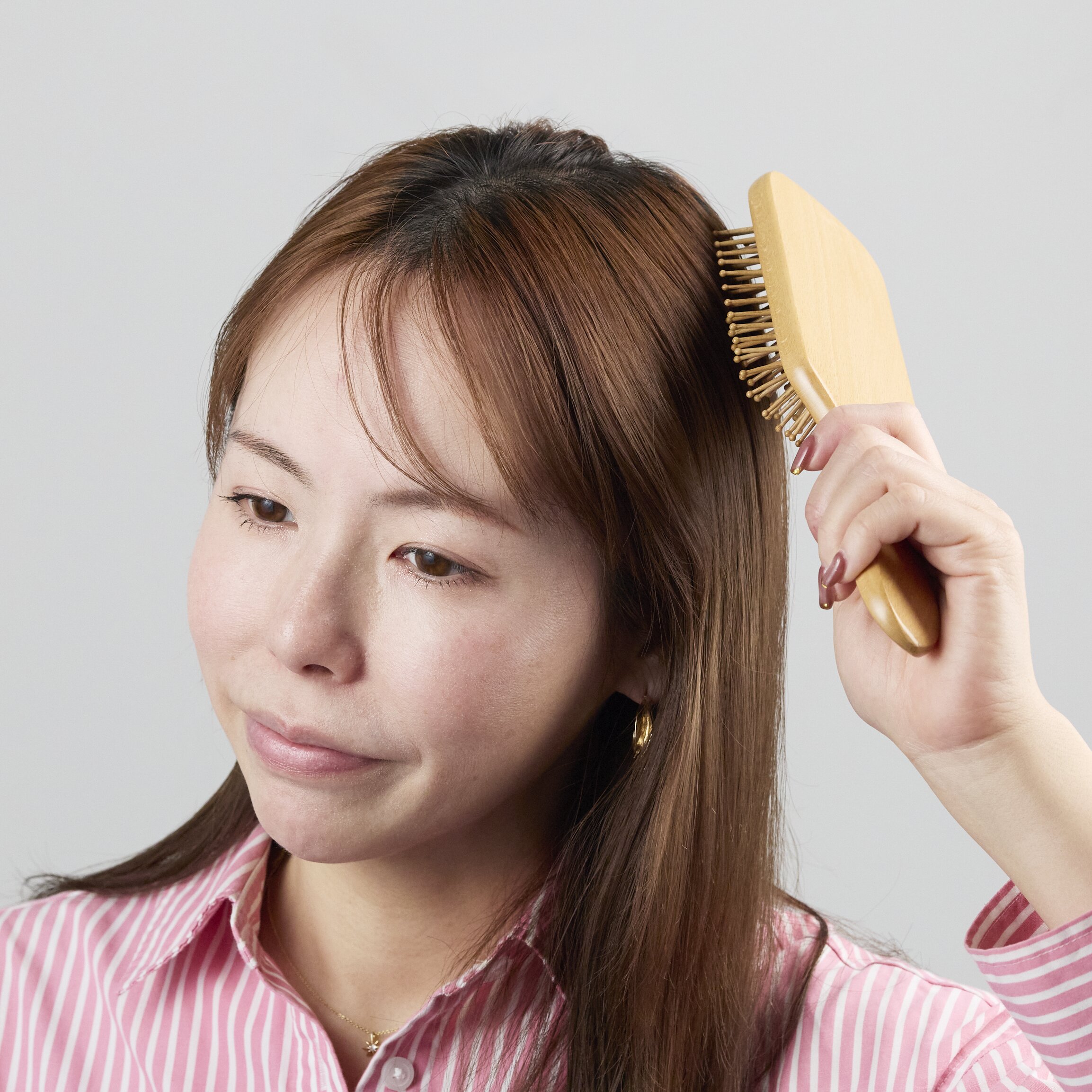 髪全体をブラシでとかします。