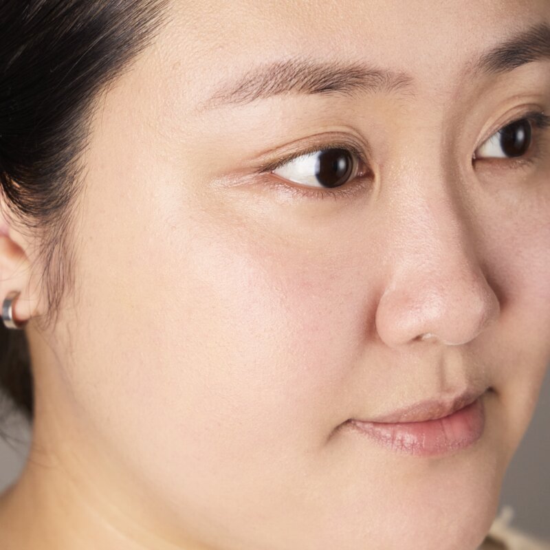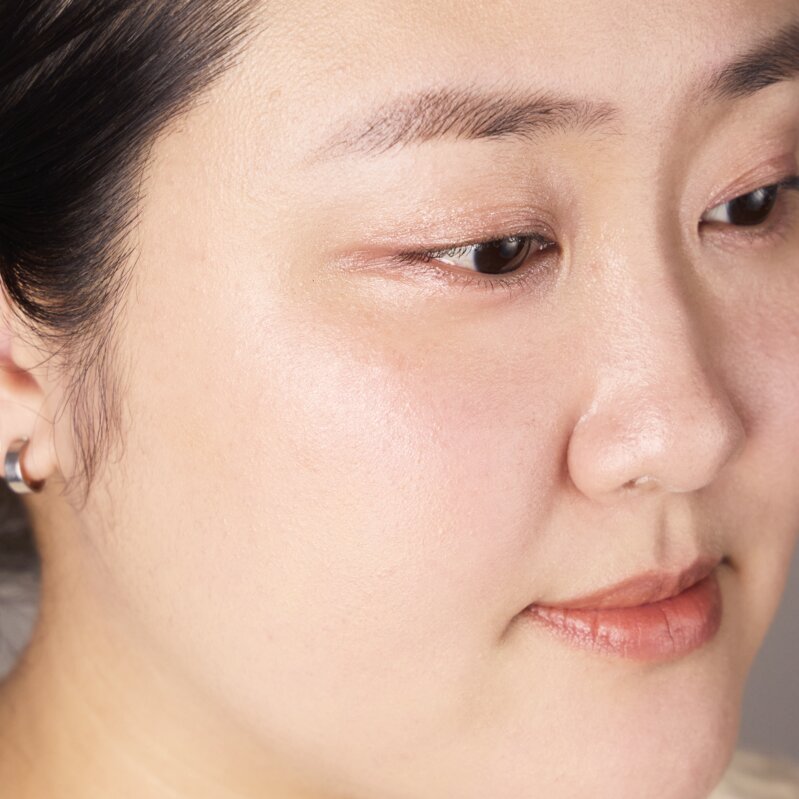 自然なトーンアップ*効果と透明感*、ツヤ感、自然な血色感を引き出した、エフォートレスな印象に。