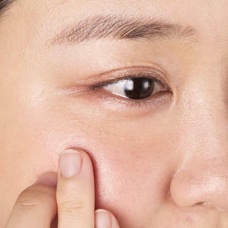 ーStep1.上まぶたの中央をメインに、「01E ルミナスグロー」を指でトントンとまぶた全体にのせます。