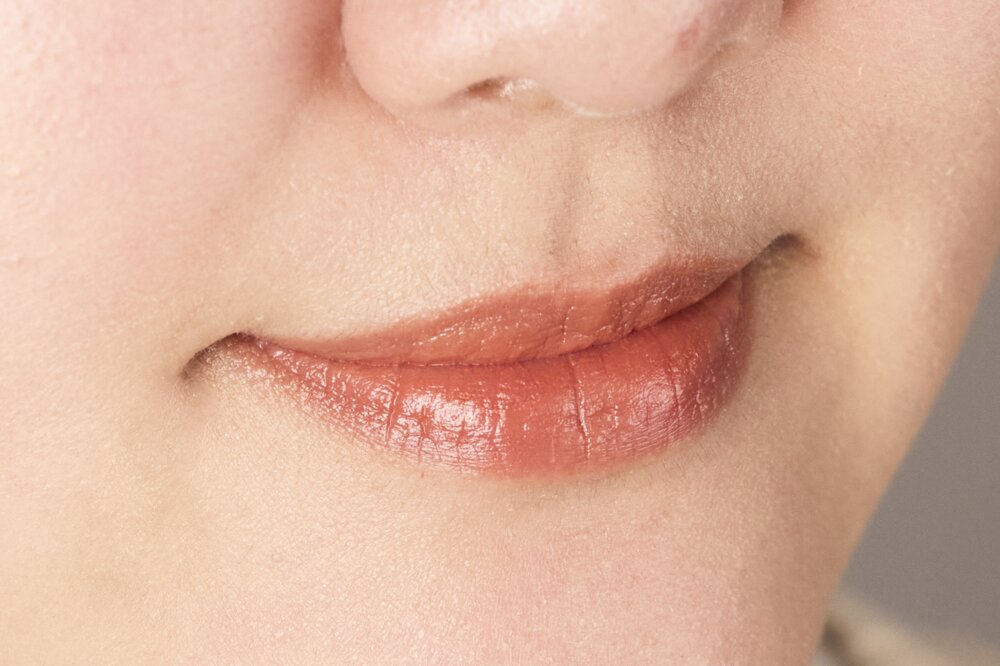 リップで指に残った「02L ビターオレンジ」をそのままチークに使うことで、ナチュラルで洗練された雰囲気を演出できます。