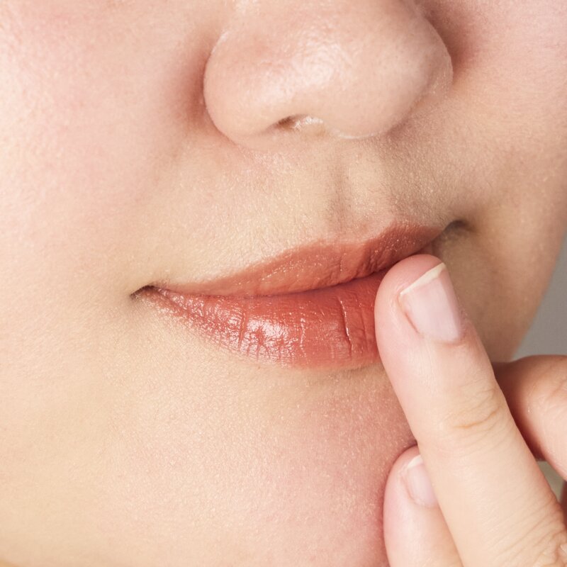 ーStep1.指にとり、唇の中央にのせたら、ポンポンとやさしく広げていきます。