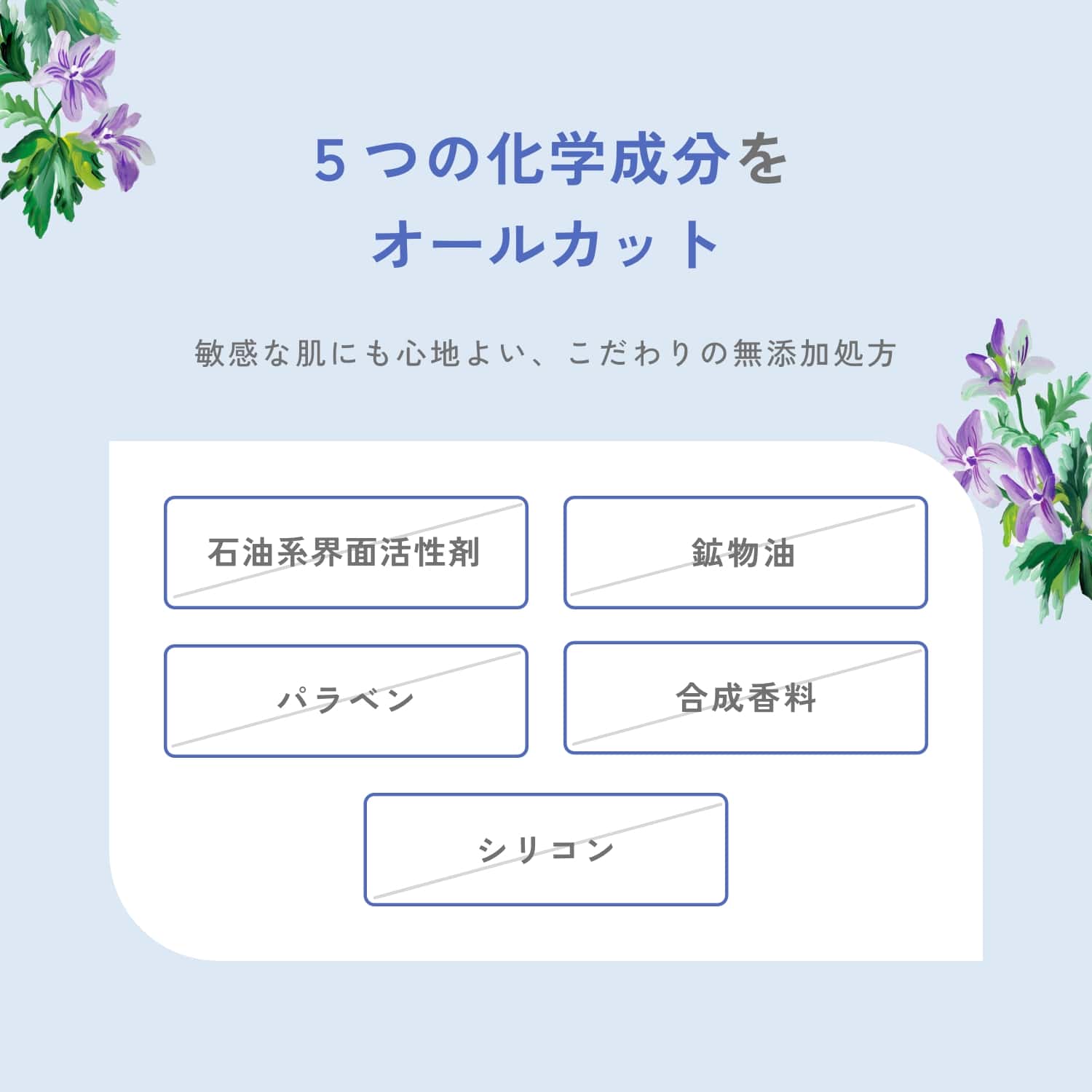 石油系界面活性剤 / 鉱物油 / パラベン / 合成香料 / シリコン