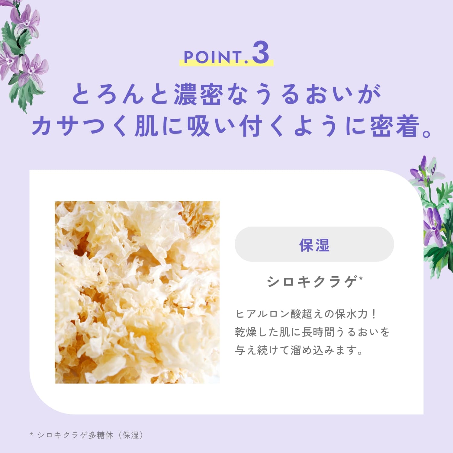 手のひらに吸いつくほどのうるおいを与える、濃密とろみローション。 保湿成分を10倍配合*1し、厳しい乾燥から肌を守ります。